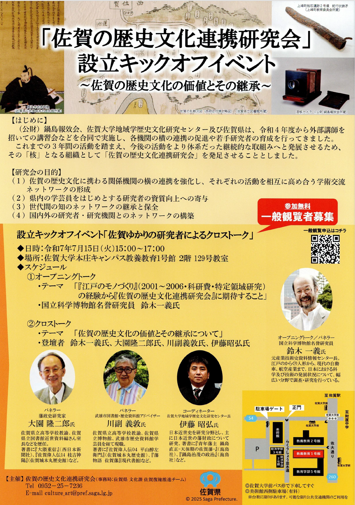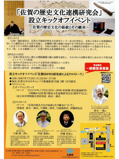 主 催: 佐賀の歴史文化連携研究会 事務局:佐賀県文化課佐賀復権推進チーム